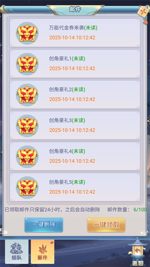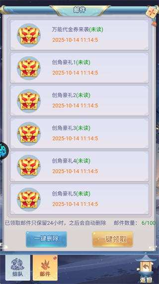 一键领取邮件内的 “创角豪礼” 等奖励,获取战力提升资源。
