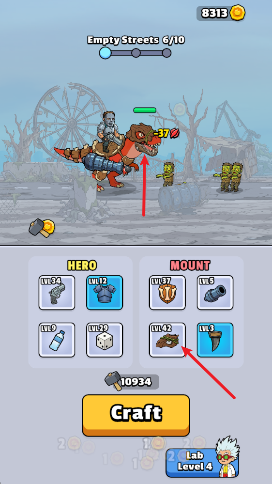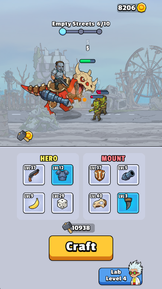 装备打造系统:点击CRAFT即可打造不同装备,佩戴后实时增强英雄生存率和坐骑杀伤力,且装备外观会真实反馈到角色模型上。