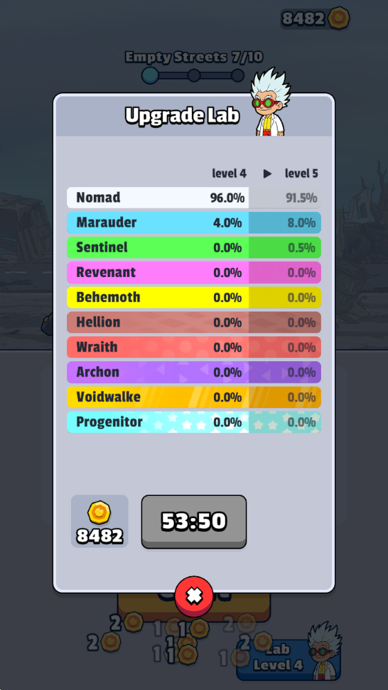 实验室升级:在LAB中消耗资源升级实验室等级,解锁更高等级的武器和装备类型,为战斗提供更强支持。