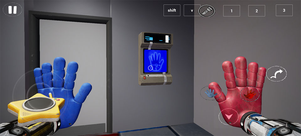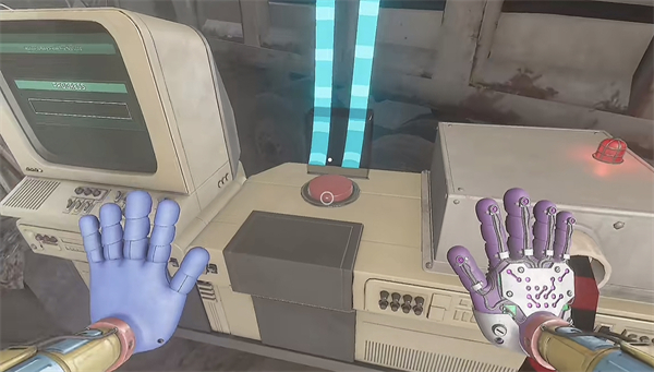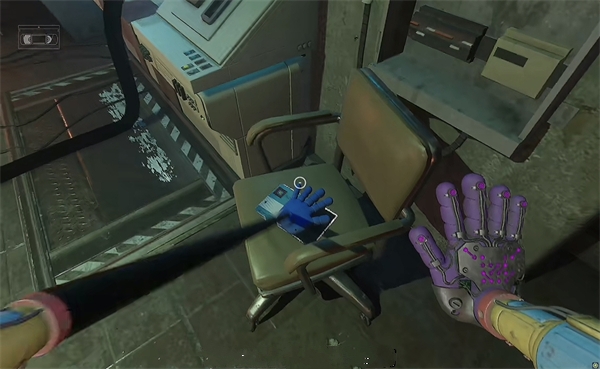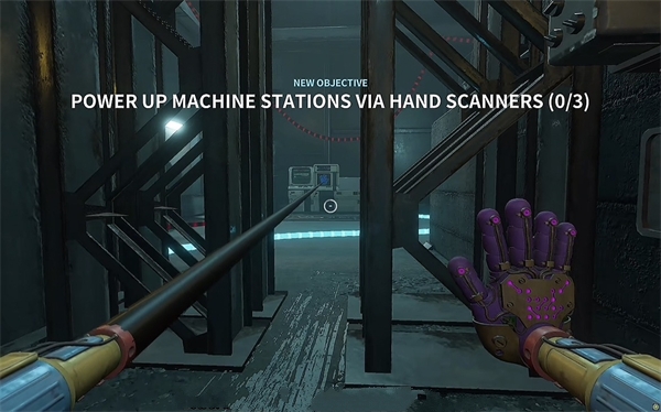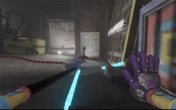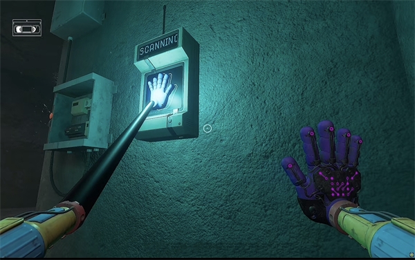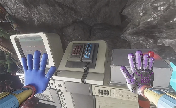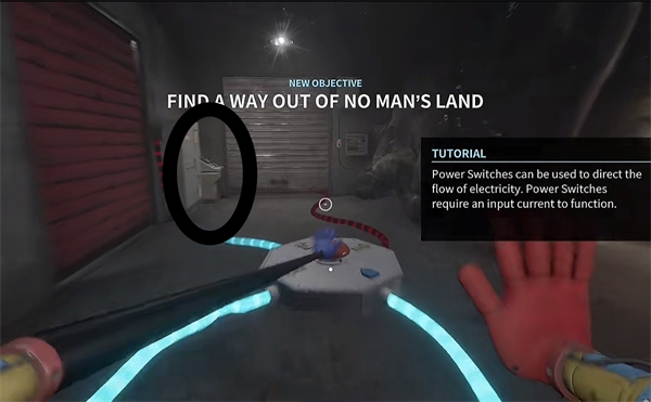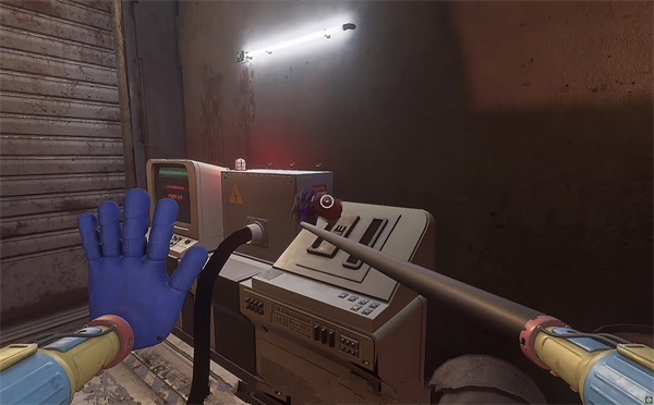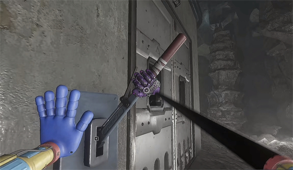 6、开门之后走里面还会有一个开关给他拉下来,往前走进去用蓝色手臂互动一下前面的开关,这里要触发三个开关才能有电流打通出口;