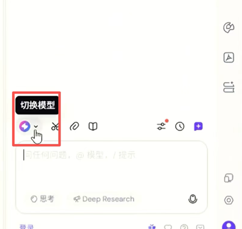 2)在侧边栏界面下滑找到【切换模型】按钮