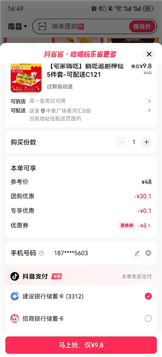 用户使用抖音账号登录后,抖音主App内的团购订单、收藏商品等信息将与“抖省省”保持同步。