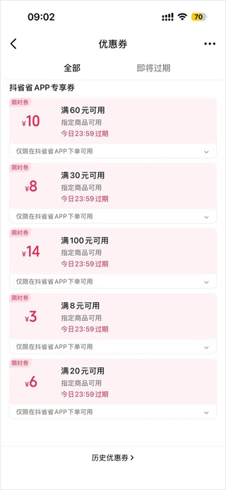 抖省省”新用户首周每天可领至多12元优惠券。