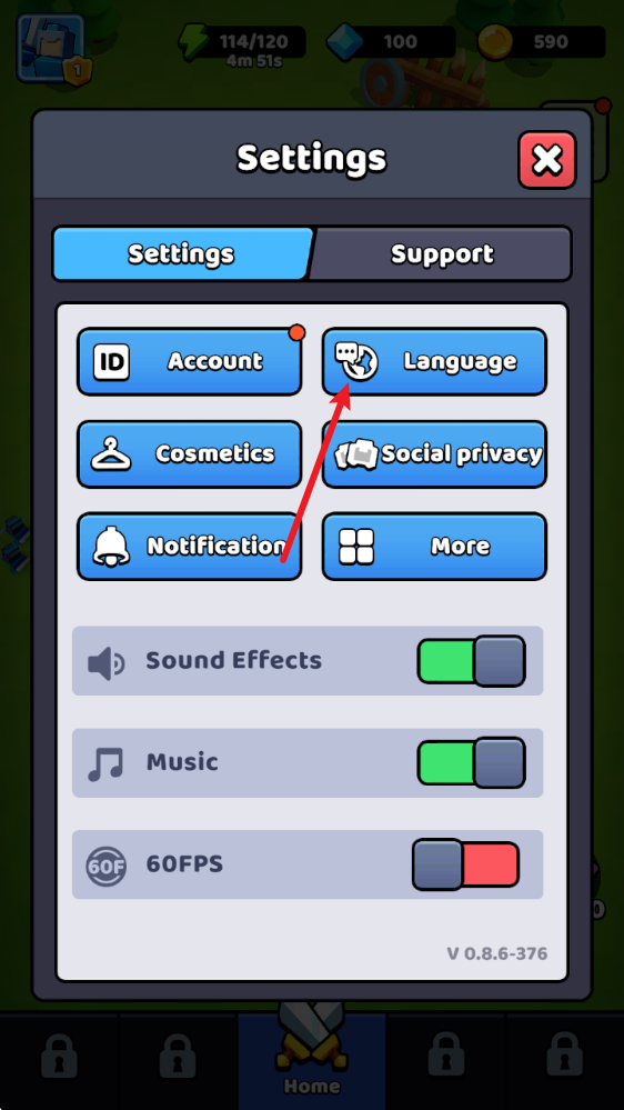 2、点击进入之后,我们选择language选项,打开语言栏。