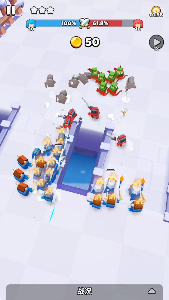 1、游戏中花费金币即可不断购买士兵。