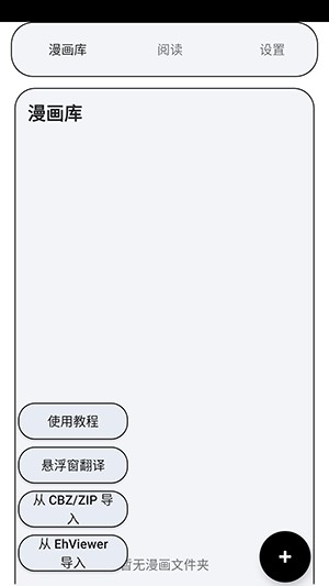 导入漫画:点击右下角的加号按钮创建文件夹,然后添加漫画图片