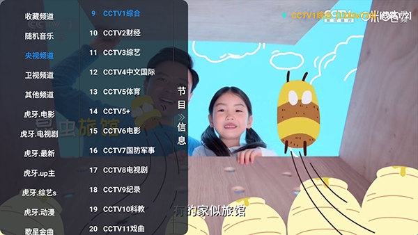 5、点击左侧屏幕或者使用遥控器按菜单选项可以唤起电视频道列表。