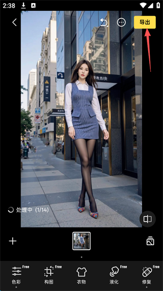 6、最后点击屏幕右上角的“导出”即可,这样就完成了批量修图的操作。