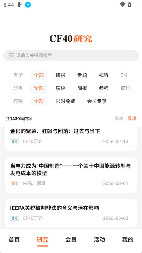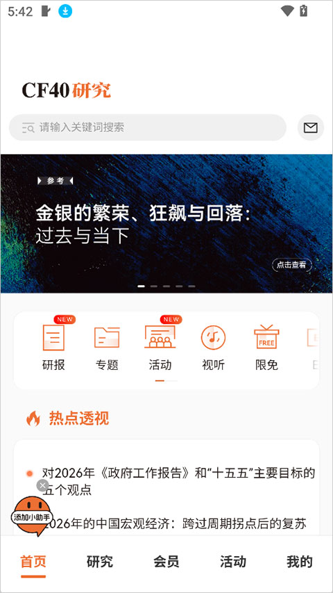 《CF40》是中国金融四十人论坛官方出品的数字化智库平台,依托300余位顶尖专家团队,每日推送宏观经济、政策动向等深度研报与精选资讯。通过中英双语报告、播客视频、闭门线上会议等多元形式,为金融从业者、研究者及企业高管提供专业、前沿的金融知识服务。