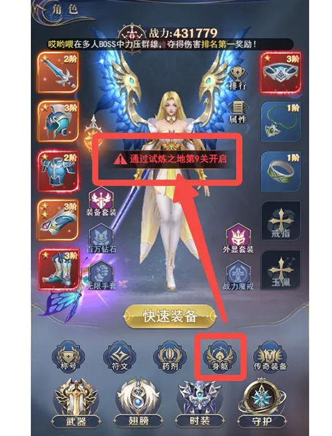 当勇士激活的身躯数量以及身躯等级,达到一定阶数时,可以对角色的永恒之躯进行升级;