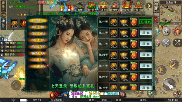 登录奖励、在线奖励、每日杀怪...