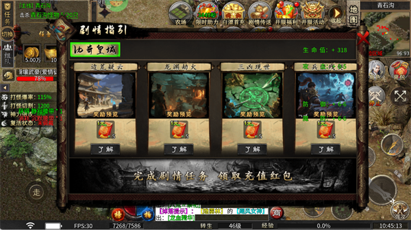 完成剧情任务“边荒疑云”和“龙渊劫火”等,将获得1元充值红包,进一步增加你的资源储备,帮助你更快发展。