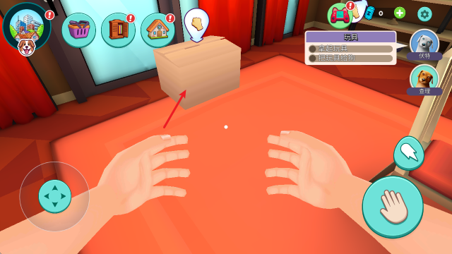 1、游戏中拖动摇杆进行移动,根据右侧任务来完成对应操作。