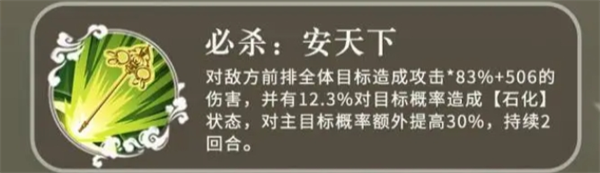 技能推荐①:石化攻击-普通攻击时,有概率对目标造成石化状态,持续2回合。