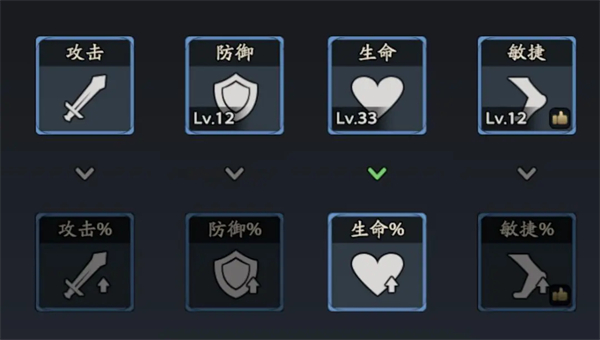 研究:优先生命生命百分比、敏捷敏捷百分比、防御防御百分比、攻击攻击百分比、暴击概率、反击概率、命中、闪避、状态抗性。