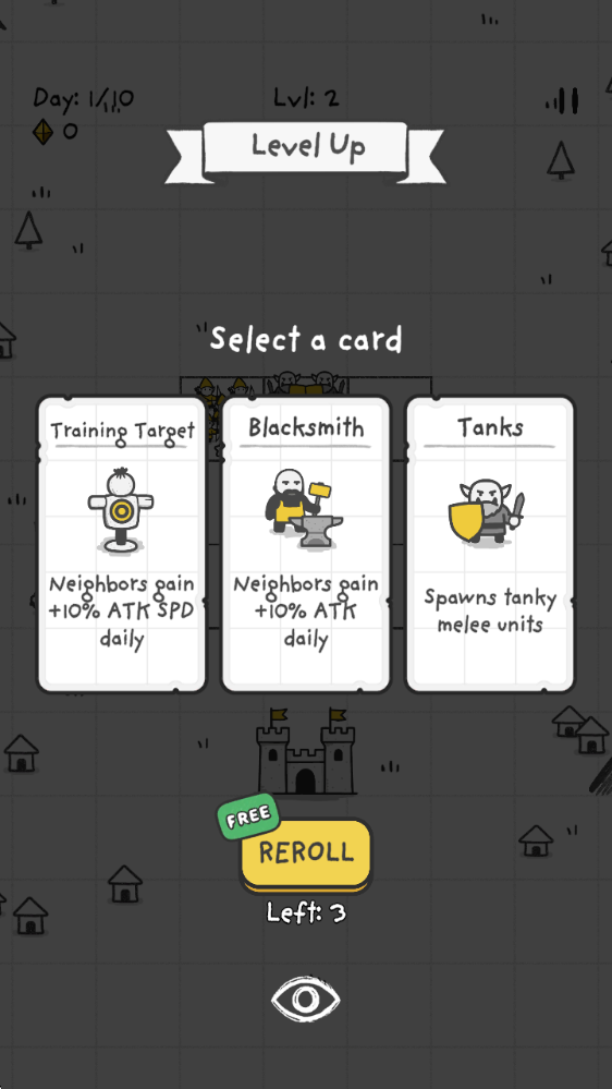 独特的“三选一升级”系统让每一次游戏都独一无二——每波敌人过后,你都可以从三张卡牌中选择一张,强化现有单位或解锁新单位加入战斗。
