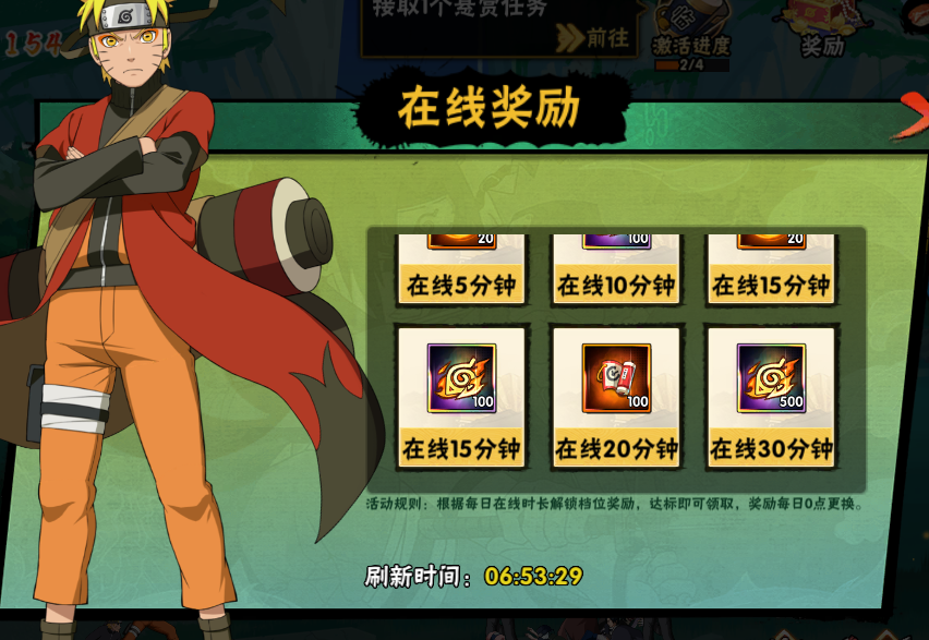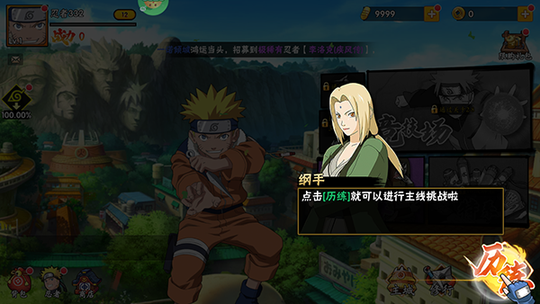 历练系统:点击右下角“历练”开始战斗,左上角可领取漩涡鸣人九喇嘛碎片,挂机200分钟可领取200个碎片