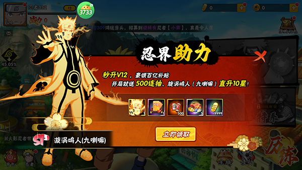 每日在线送万钻+大量招募卷轴,随意组建专属的传奇忍者小队