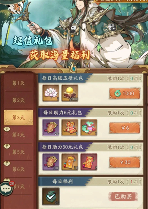 游戏前期需要大量材料,获得的玉璧可以去购买福利的养成特惠,全部买满,直到你6个武将全都升满就停手