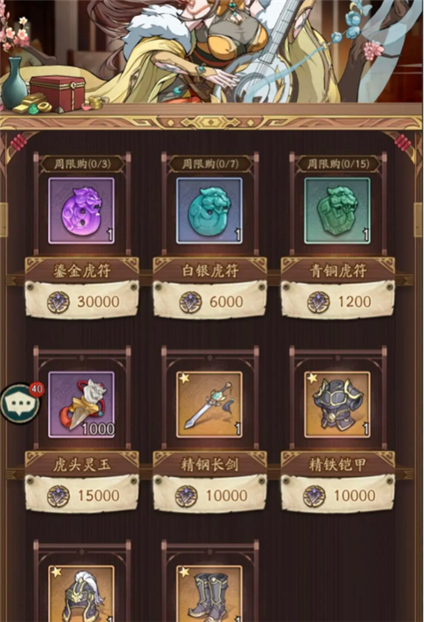 斩将商店前期先把虎符换满,等后面主c合成红虎符了,再考虑买虎头玉。