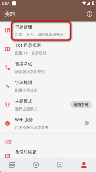 3、进入 “书源管理”;