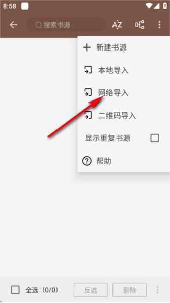 6、将获取到的书源网址粘贴到输入框中,点击 “确定”,等待导入完成。