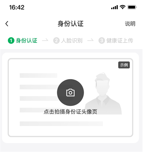 第一步:根据提示上传身份证正面,只可使用自己的身份证,使用别人身份证将导致无法通过身份验证