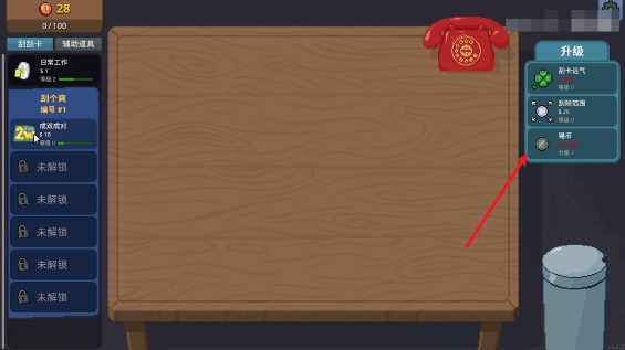 4、后续还可以升级自己的各种属性,例如运气、刮卡范围等等,一定要升级,不然后面的很多刮刮乐根本刮不开!