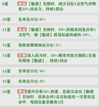 主要作用在给敌方武姬上减益效果降怒以及攻击力并且控制对方无法行动一回合,16星之后可以跟吕布进行联动,大大增强吕布的进攻能力。