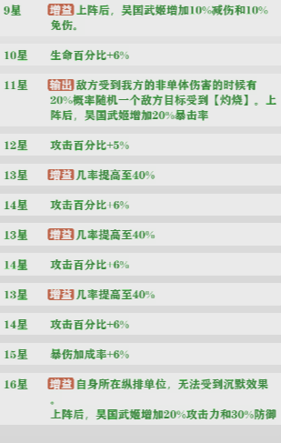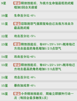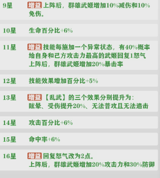 吕布的9星,11星,14星,16星的天赋都是质的提升,怒气叠满之后基本能一回合秒一到两个敌方武姬。