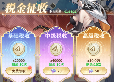 第一周的决战新服中的税收好礼一定是要拉满,后期升级装备以及升级武姬都需要大量的金币,钻石税收10次也是只有第一周才有。