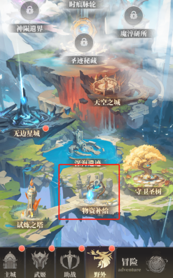 野外的物资补给也必须要每天扫荡完,圣册残页,装备,经验,金币都是提升战力的刚需。
