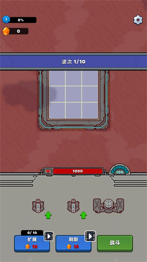 6、一波结束后玩家会进入休息状态,你可以点击刷新来获得新的炮塔,或者点击扩展来扩大你的基地。