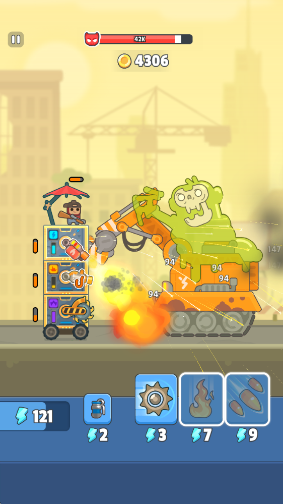 除了战斗塔的武器配置,主角也可收集并穿戴各类装备,成为战场上的独立战斗力。主角与战斗塔协同作战,共同清扫僵尸,形成双重火力输出。
