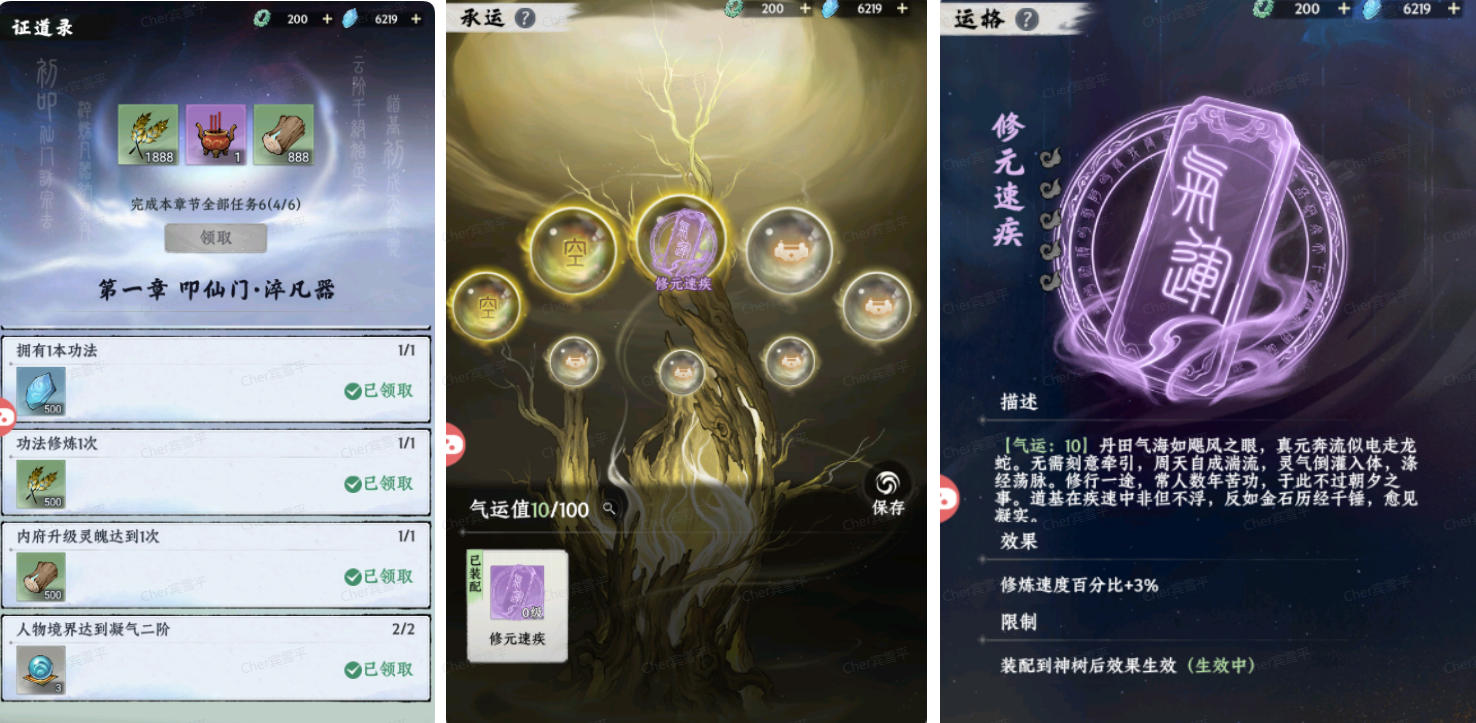 【气运】:影响气运玩法的气运效果,修元长青(气运-修元速疾)、无中生有(气运-烂柯棋缘)、宝衍诸天(气运-宝衍诸天)