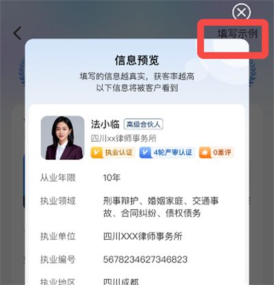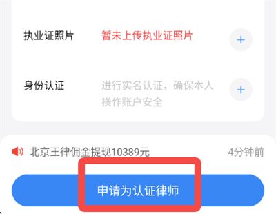 4、填写完成后,点击【申请成为认证律师】,审核通过即完成律师认证。