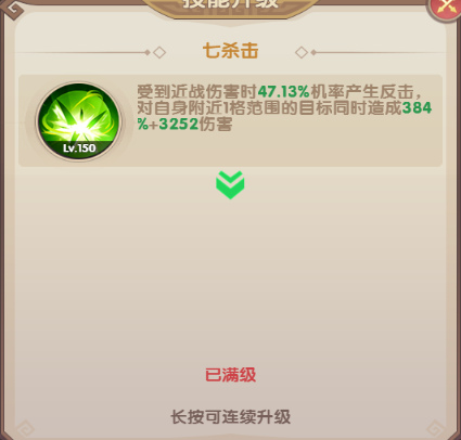 被动:攻击时有几率晕眩对手3秒。提升自身一定额的攻击力。提升身边1格内队友的战意回复数值。(战意满了可释放主动技能)。