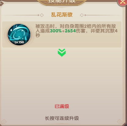 被动:100%闪避下次攻击,状态不能叠加,升级减技能cd(保命被动)。被攻击时对自身2格内所有敌人造成一定伤害,并使其沉默4秒。提升自身闪避值,随等级增加。