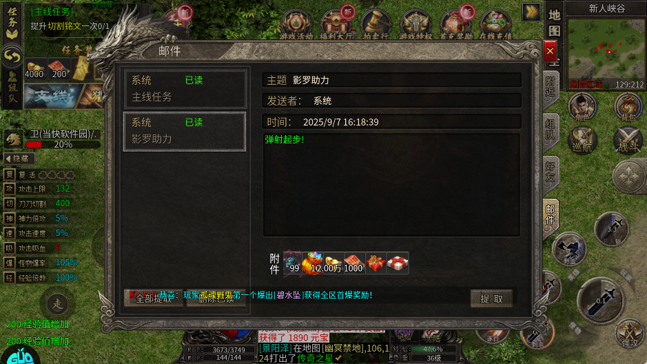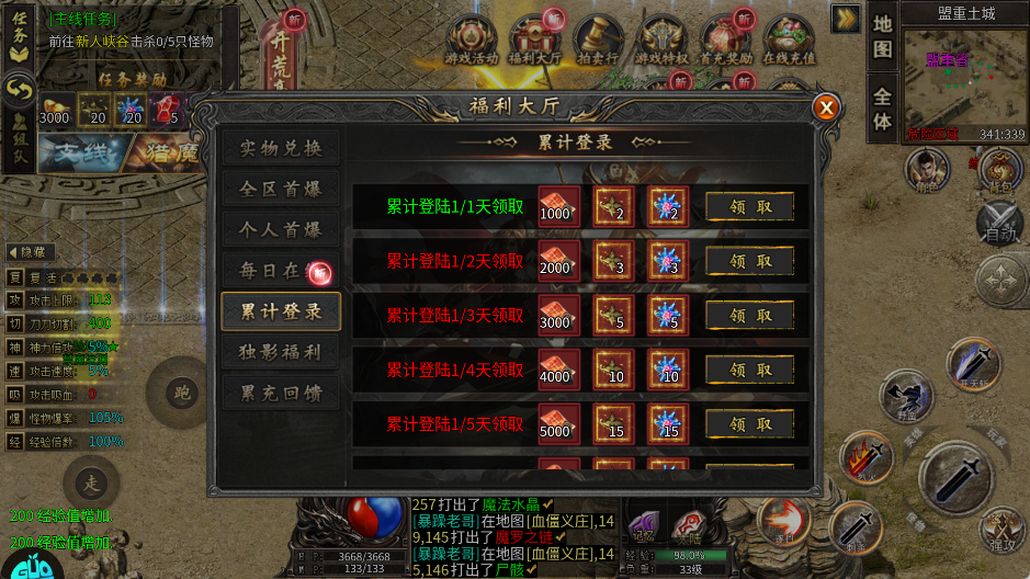 1、进入游戏第一步,一定要记得新手专属奖励,这些装备和道具能让你前期打怪效率直接提升,避免卡关。