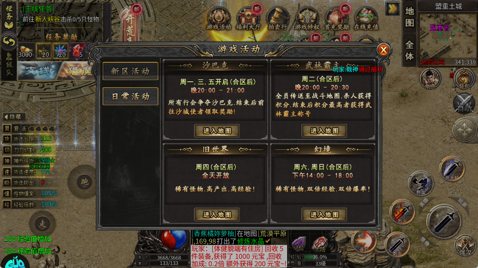 游戏以打金为核心玩法之一,玩家可以通过完成任务、挑战BOSS、参与活动等方式获取金币。