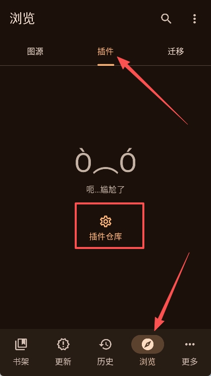 2、进入【浏览】页面,点击【插件】选项下的【插件仓库】。