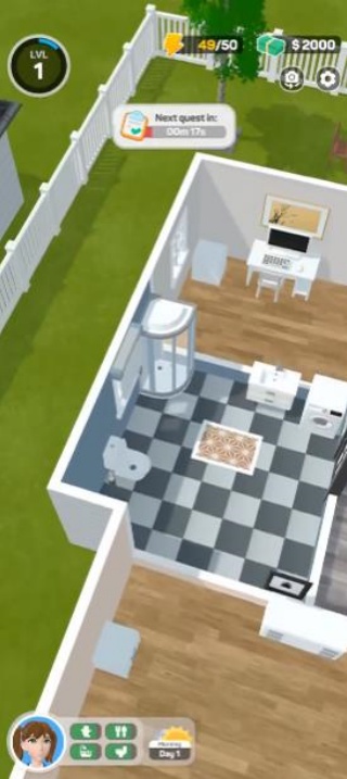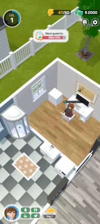2、使用游戏内货币购买建材与家具,逐步装修房间、扩建楼层,打造舒适又美观的生活空间。