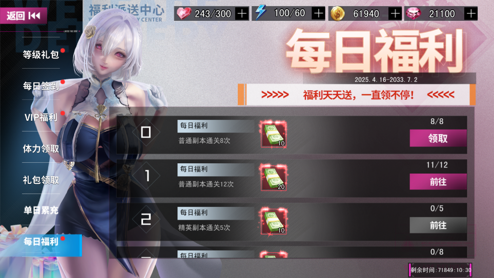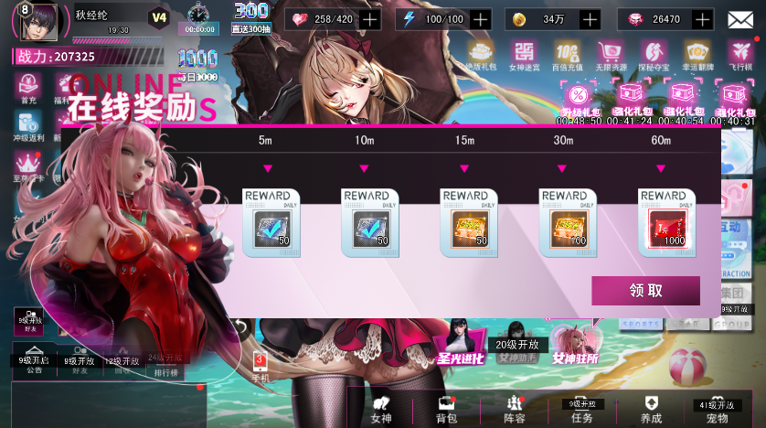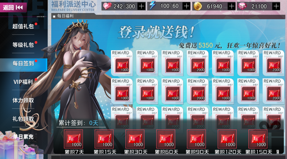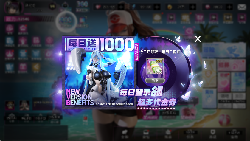 7.每日在线赠送1000充值卡叠加250抽,女神、票子通通收入囊中