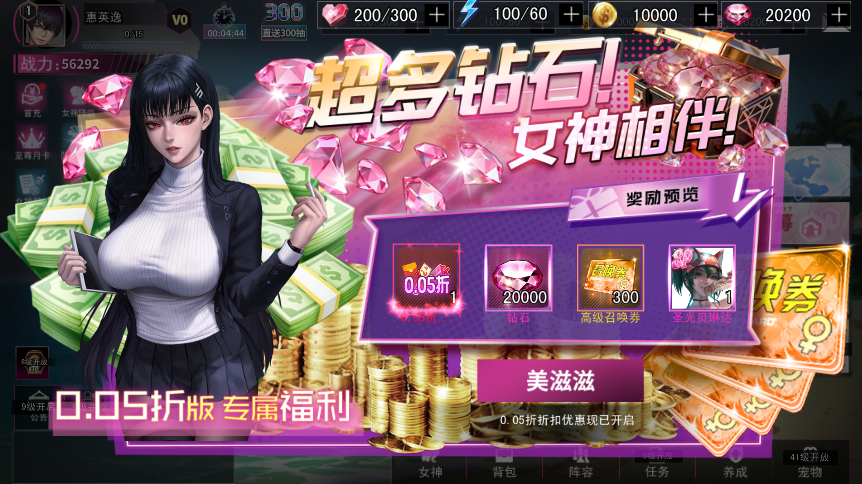每日在线赠送1000充值卡叠加250抽,女神、票子通通收入囊中