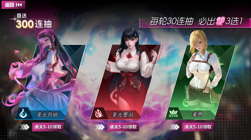 2.闯关达标即可领取SP品质女神,轻松0氪,直接抱美萌女神