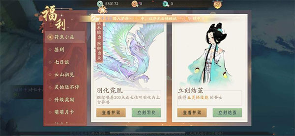 在符鬼小屋的符鬼成长度到达300时,系统会让玩家选择继续喂养到500成长值来得到异兽霓凰,或者是直接兑换一个相应属性的五灵悟的护驾。在游戏里一共有五种不同属性的符鬼,分别是阴符鬼、阳符鬼、冥符鬼、光符鬼、影符鬼。初始符鬼的属性是阴阳冥三种,符鬼在每天的6点会自动增长成长度,在后期的喂养中也可以让符鬼的成长方向发生改变。