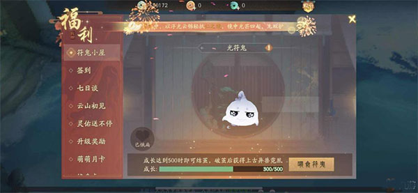 在玩家完成剧情轮回缘起后就能开启符鬼小屋系统了,此时游戏将赠送玩家一个符鬼。很多小伙伴不是很理解符鬼的作用,大家可以把符鬼理解为一个具有辅助作用的护驾,在符鬼小屋的玩法中我们可以通过喂养符鬼来培养符鬼的成长度。