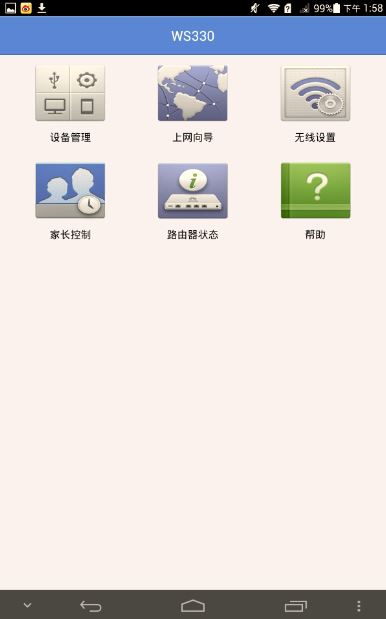 -设置:集成上网向导、修改Wi-Fi、检查路由器版本更新、查看路由器实时状态、设备重启等多项实用功能。