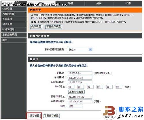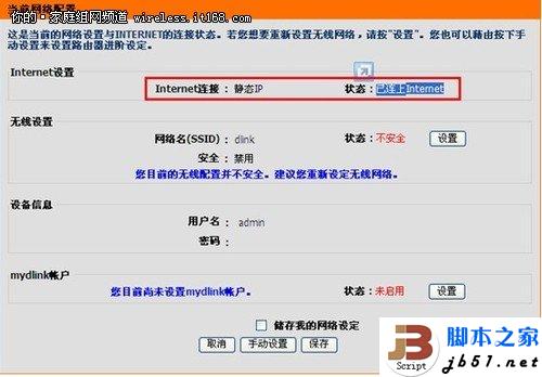 在这个图中,可以看到路由器已经成功侦测出我当前的上网类型是静态IP,已经成功连接到internet。