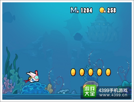 玩家在地图中可以看见一架小潜水艇,玩家在得到潜水艇后可以进入海底世界,同样采用了无重力设计,并且增加了河豚,当经过玩家身边时身体会突然变大,操作与天宫之城相差无几,反应也会有所延迟。